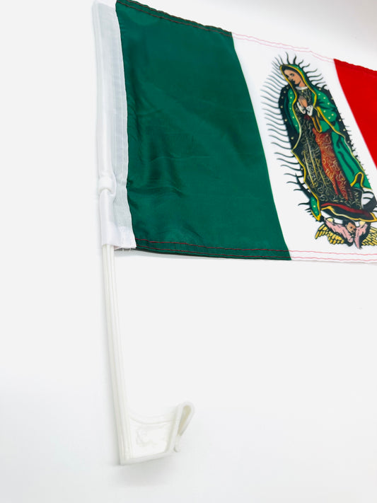 MEXICO SINGLE SIDED CAR FLAG VIRGEN OF GUADALUPE-BANDERA MEXICO PARA VENTANA DE AUTO VIRGEN DE GUADALUPE UNA PIEZA