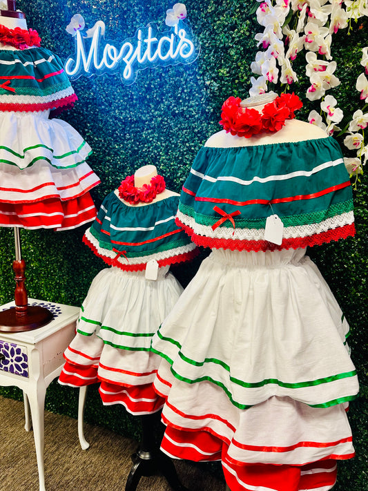 Tricolor dress for girls with ruffles/Vestido Tricolor para niñas con olanes